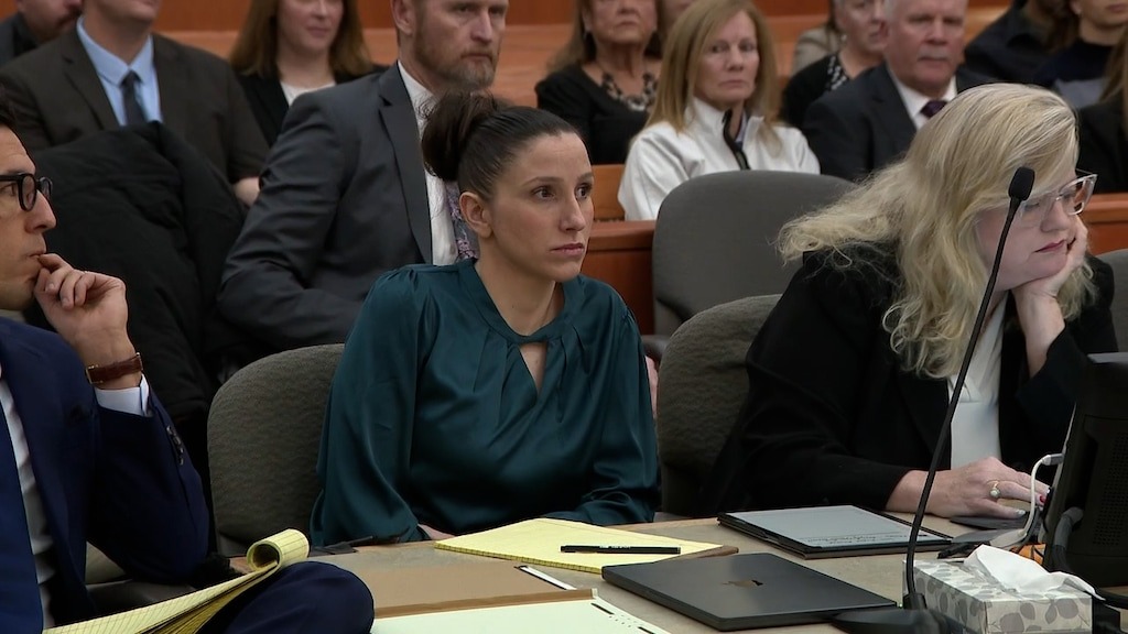 Kouri Richins is in court today—calm, composed, dressed in dark professional attire, listening intently as the prosecution lays out its case.